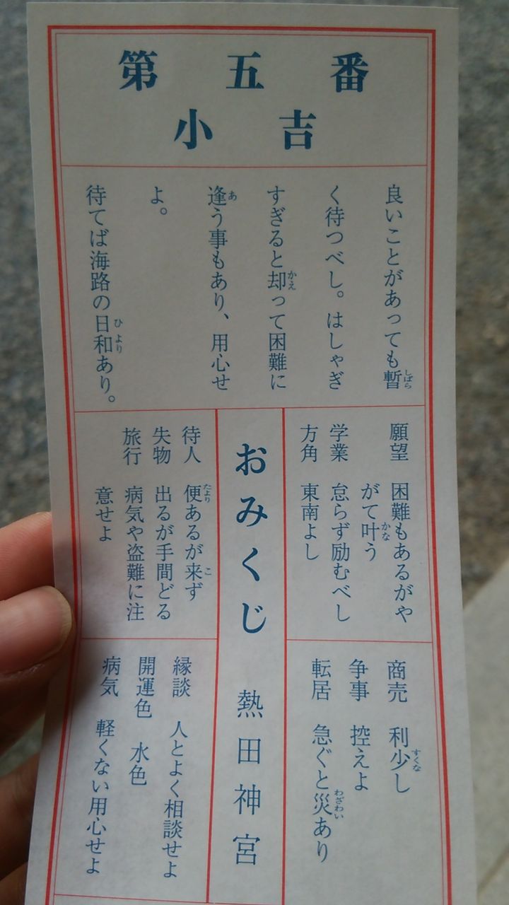 おみくじじゃないが、熱田神宮で売ってる勝負に勝つご利益がある勝守ってお守りの効果はガチだぞ。