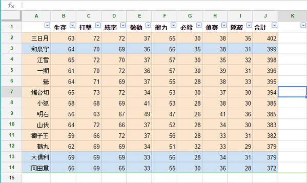 ステータス合計値で江雪左文字を抜く