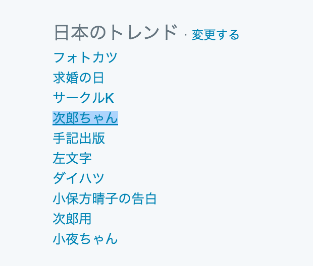 tkまだトレンドに「次郎ちゃん」入ってる流石だw