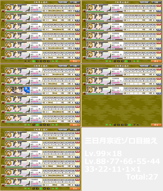 「三日月宗近をカンスト18人」 更にLvを「11、22、33・・・」というようにゾロ目で揃えた審神者が登場。おや、この様な仕事をした審神者が以前にもいたような・・・?