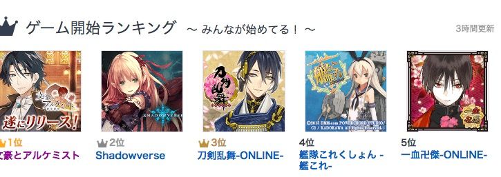 DMMランキングは、艦これ以外、新ゲームがしばらく強くて