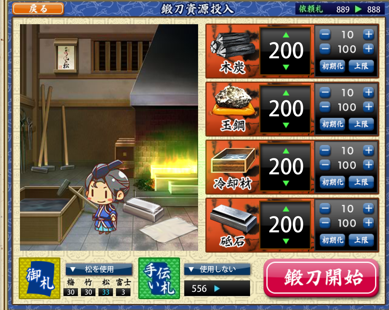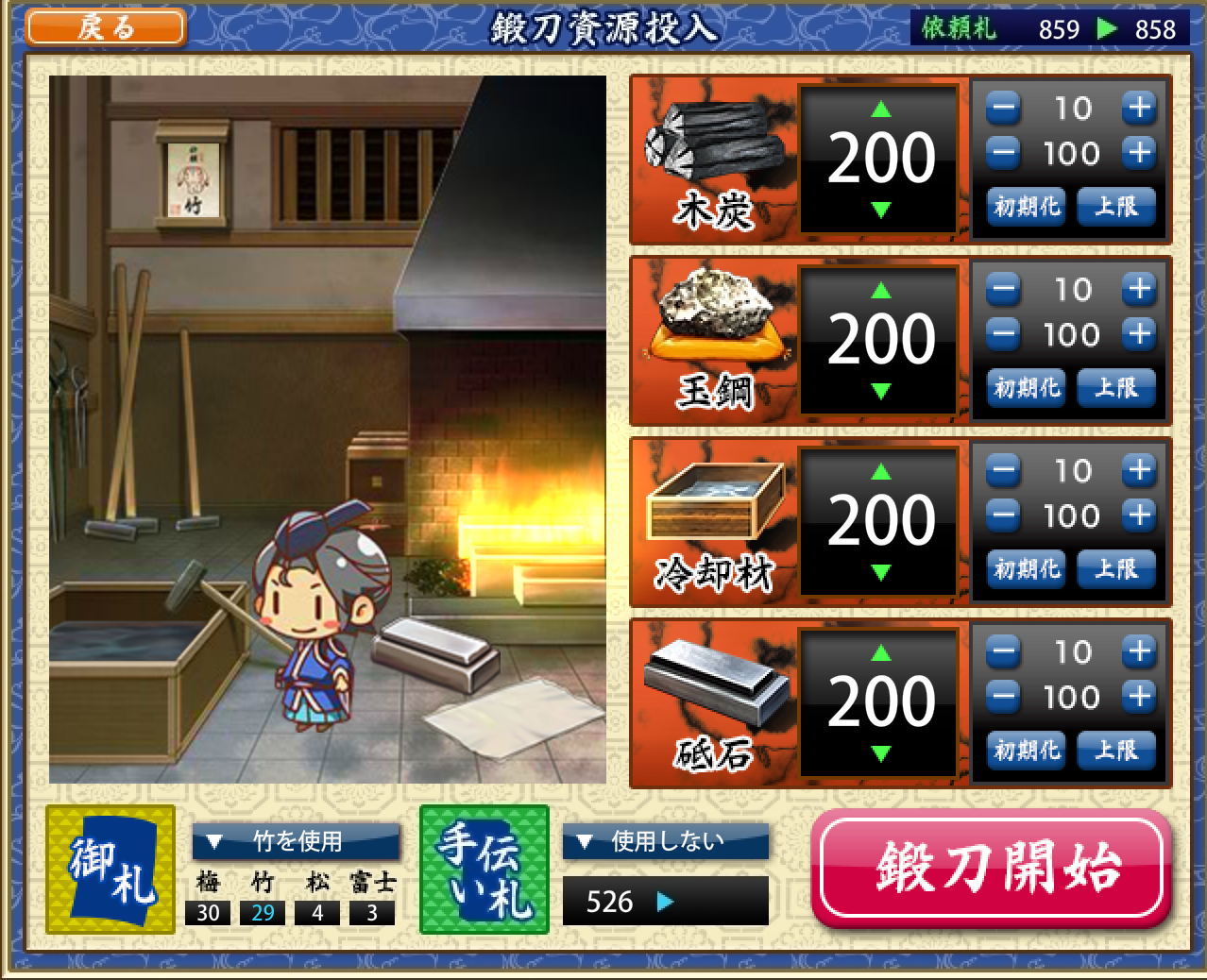 つまり、前々から気になってた「鍛刀イベントの時に富士札購入しなくても、他のランクの御札(松竹梅)とかでも良いんじゃね?」って疑問を検証できる絶好のチャンスじゃないか、と思いまして他のランクの御札を購入して、更に90回鍛刀しました。