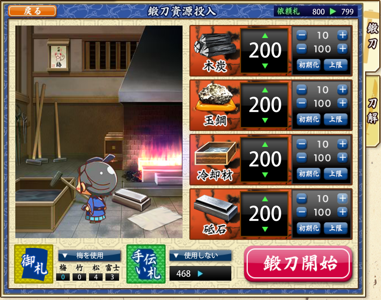 もうすこしだけ鍛刀がんばってみようかな。