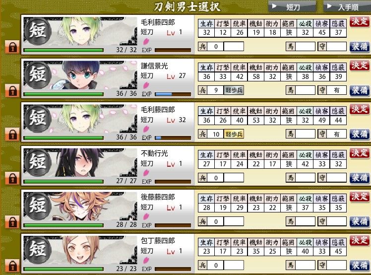 毛利を累計2振り入手した審神者がいる模様毛利と毛利の間に謙信がいるってことは前回の大阪城で入手したのか