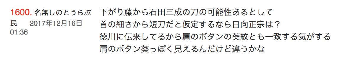 別の攻略掲示板で日向正宗当ててる人がひとりいたな