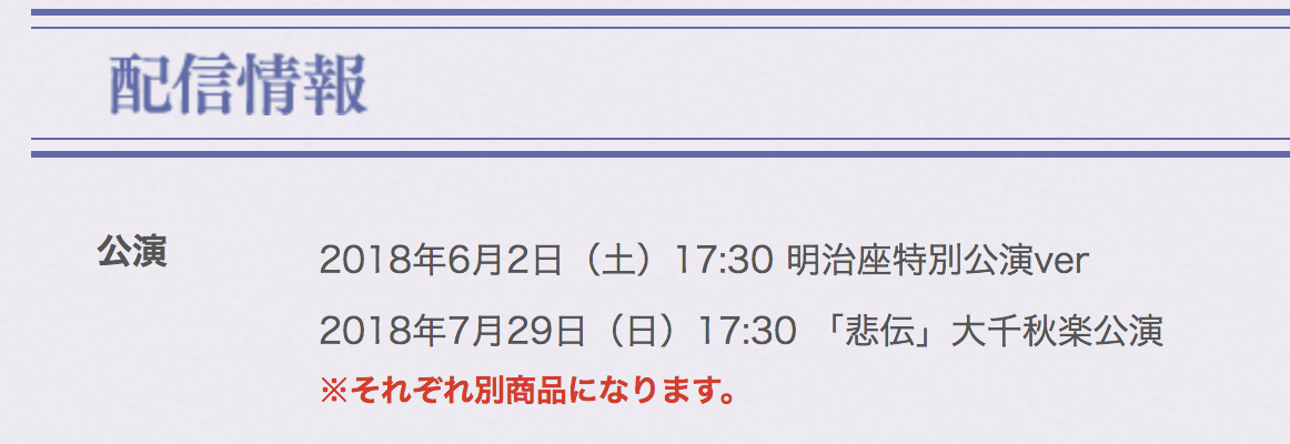 - 2018年7月29日 17時30分〜の千秋楽公演が対象