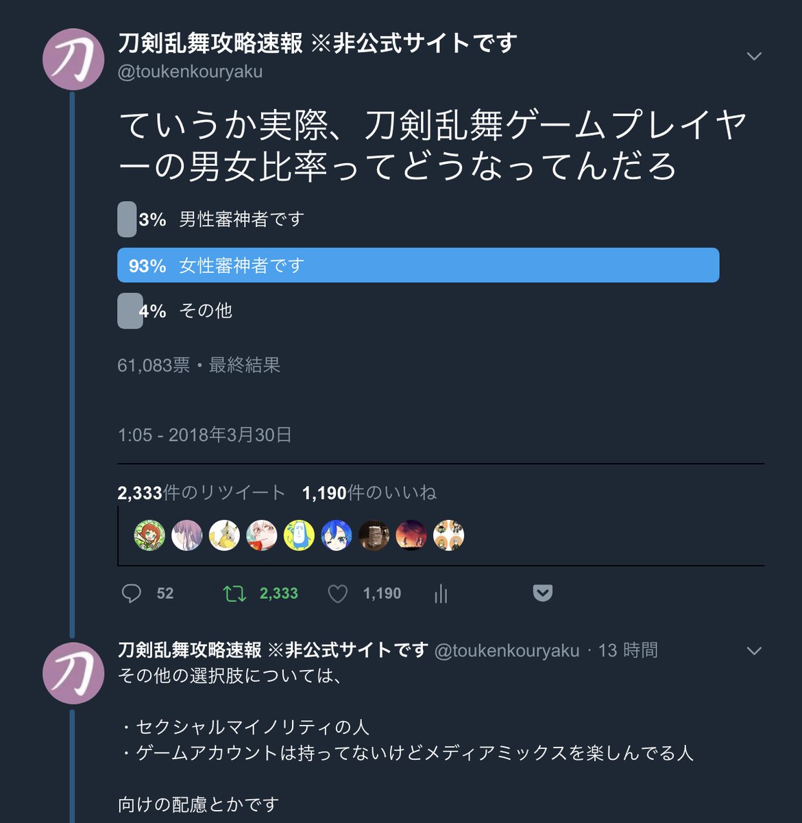 刀剣乱舞-ONLINE-(とうらぶ)にて、男性プレイヤーに人気な刀剣男士って誰なのかって話題。