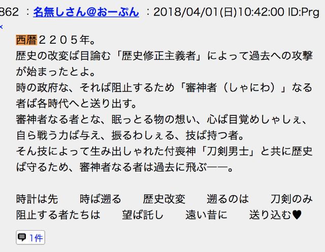 おーぷん2chの審神者たち、今年も遊ぶ794: 審神者
