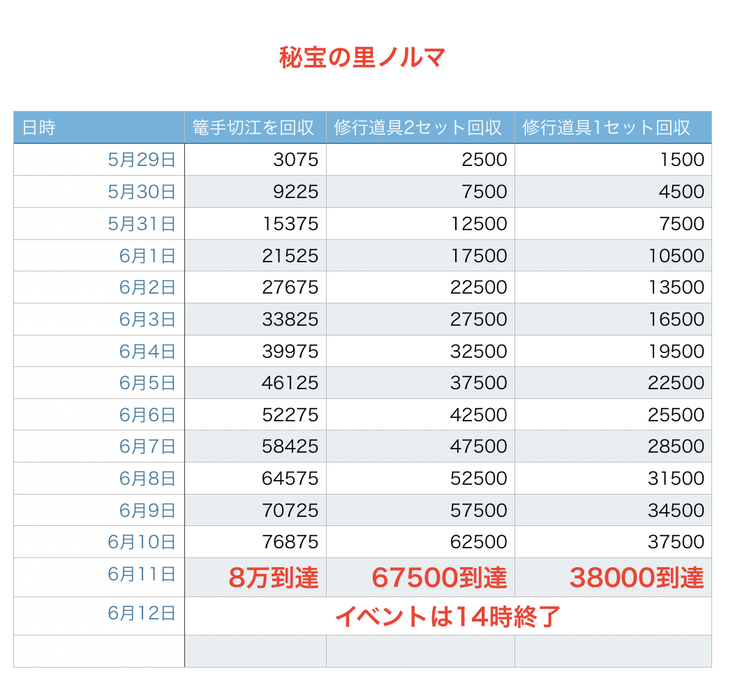 - 修行道具1セットを回収する場合 → 38000到達が目標