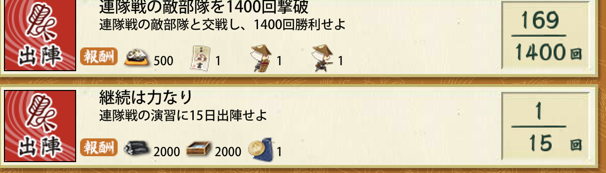 報酬受け取り分って書いたけど連隊戦は報酬に小判ないから小判増加は遠征分だけでした