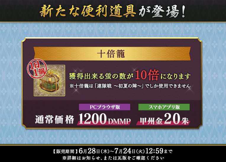 - 三倍籠:出陣中に入手できる「蛍」が3倍に