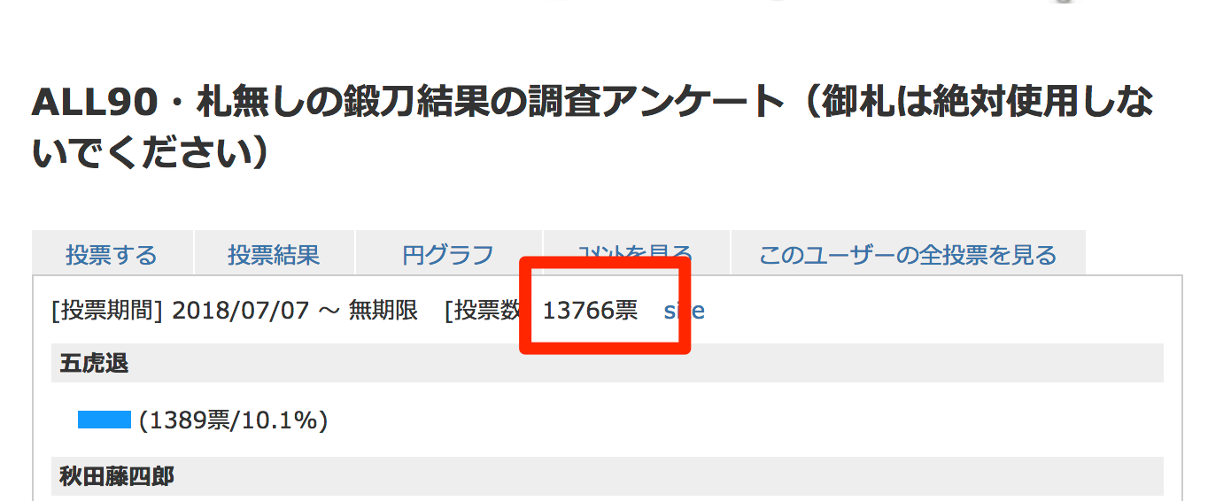 ちなみに次の調査はALL50で集計を募ろうと思うので、ALL90とALL50を比較してどうなっているのかが非常に楽しみです。