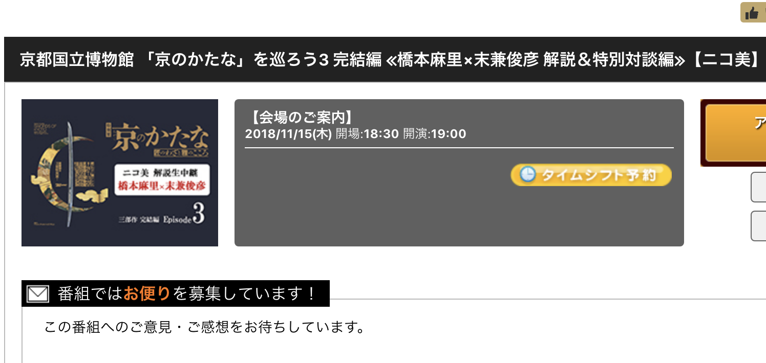京のかたなニコ生第3弾キタ━━━(゚∀゚)━━━!!三日月宗近、歌仙兼定、空前絶後の刀剣大集結!京都国立博物館 『#京のかたな』。橋本麻里さん×末兼俊彦さんの #ニコ美 第3弾・解説生中継を実施します!