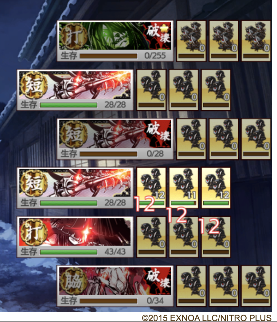 - Lv30代の極短刀の場合は敗北する場合あり(交代用の部隊を控えておこう)