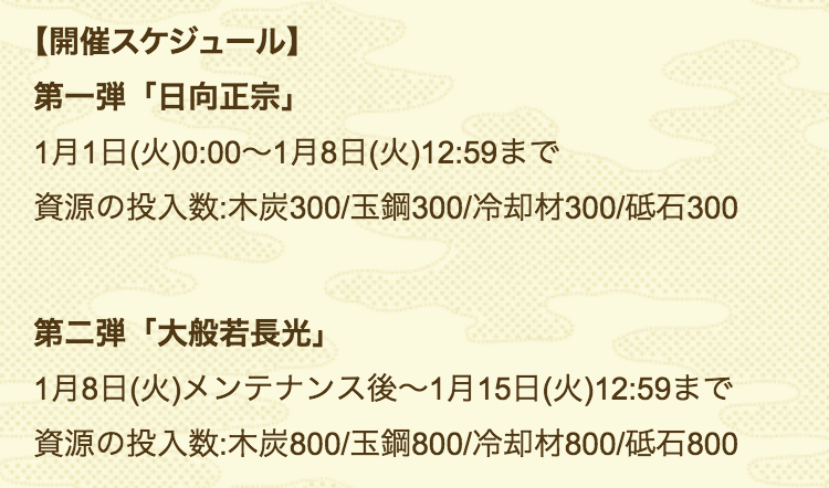この鍛刀イベントは2019年1月に行われたもので、現在は終了しております!
