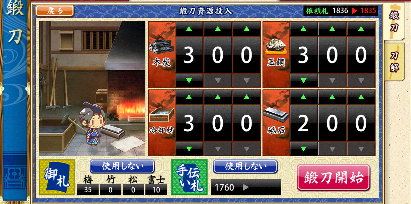無心で鍛刀開始ボタン押しちゃうから意外と気付かないんだよね…