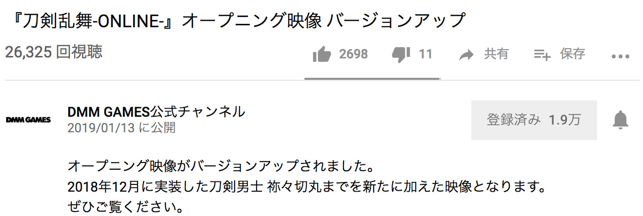 刀剣乱舞-ONLINE-のOP映像がyoutubeにアップロードされました。DMMがアップロードした公式動画です。- 2019年1月14日に公開