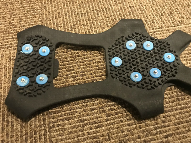 なんとかこれでも凍結路面を滑らずに歩行可能でしたが、この外付けスパイクが外れやすい為に定期的に付け直す必要があったのでストレスはそれなりにありました。