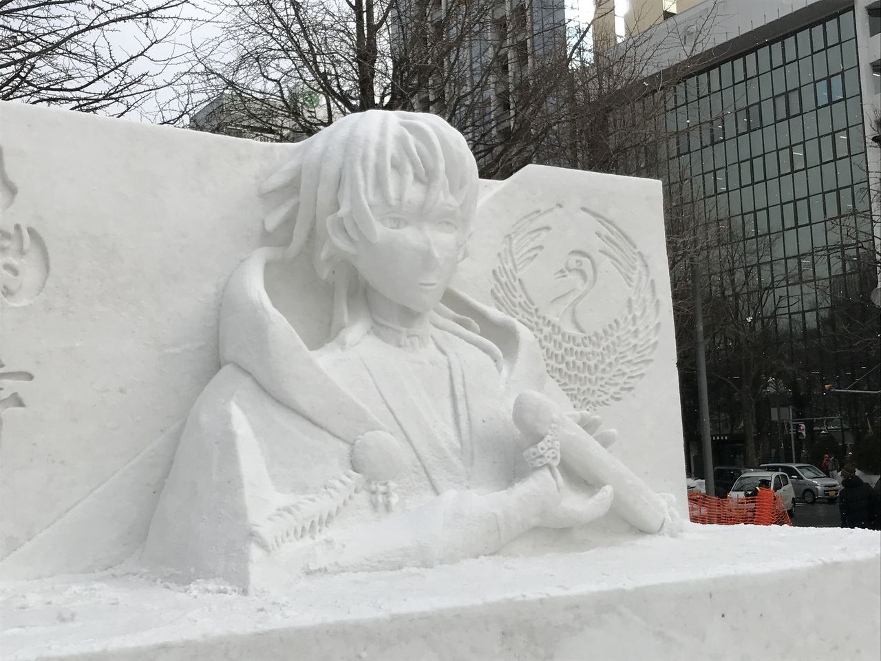 刀剣乱舞-ONLINE-(とうらぶ)のキャラクターである刀剣男士「鶴丸国永」の雪像が2019年の第70回さっぽろ雪まつりに出陣したということで、現地に行ってきました。