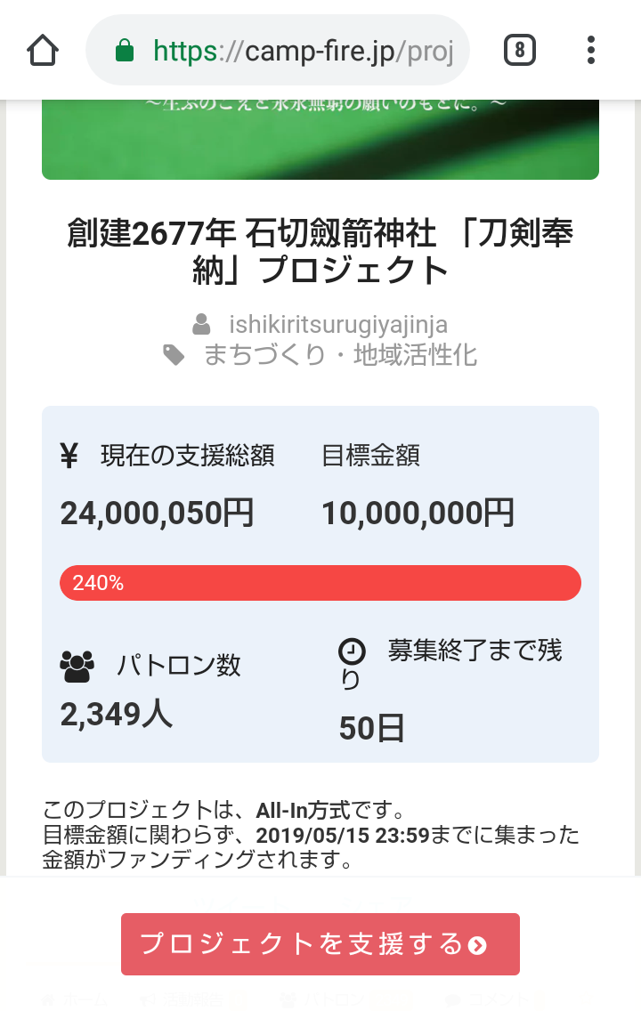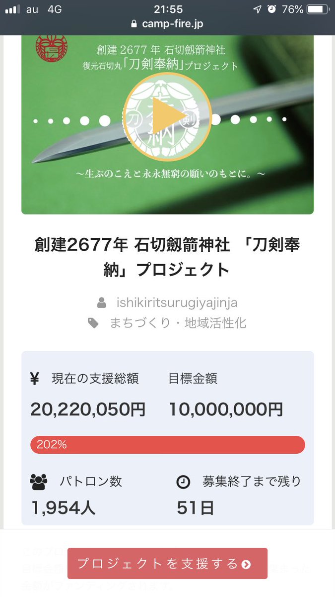 やべえな石切丸クラウドファンディング参加しなきゃ
