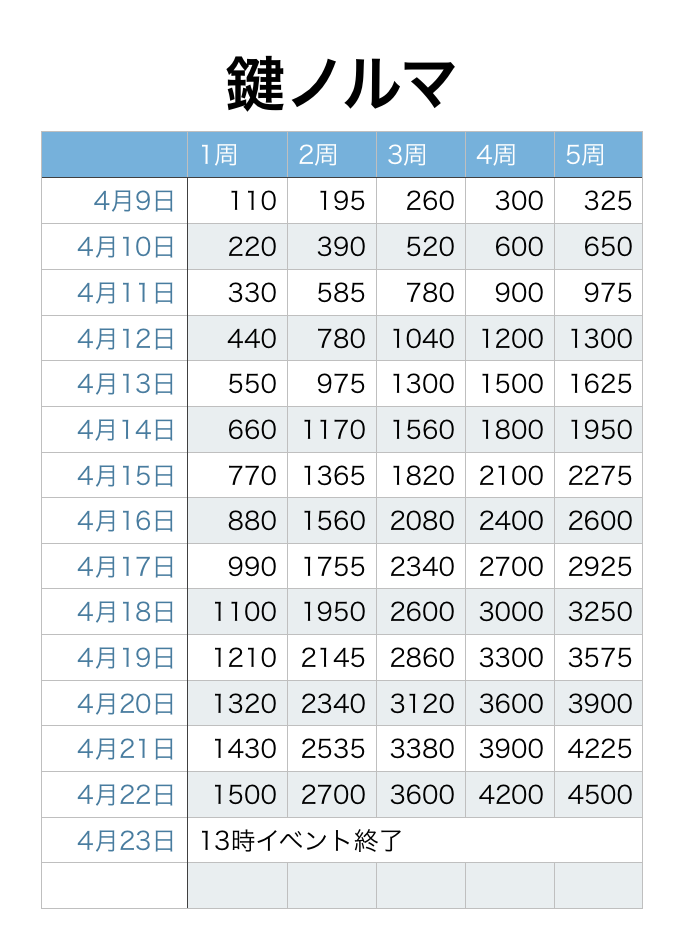 ・宝箱を1周目を全部開封すれば良いって人の1日の鍵収集ノルマは「120」です