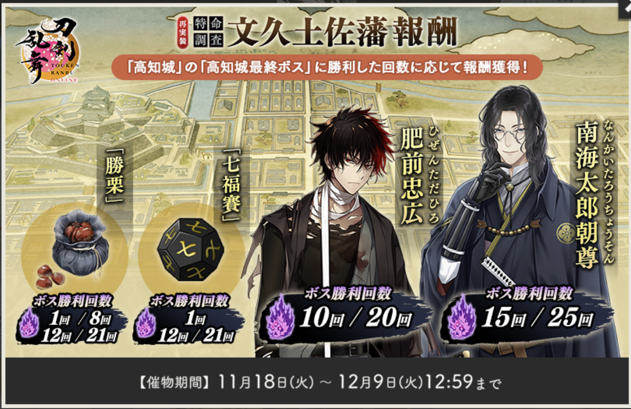 刀剣乱舞-ONLINE-(とうらぶ)の2019年10月〜11月に開催されたイベント、特命調査「文久土佐藩(ぶんきゅうとさはん)」についての記事