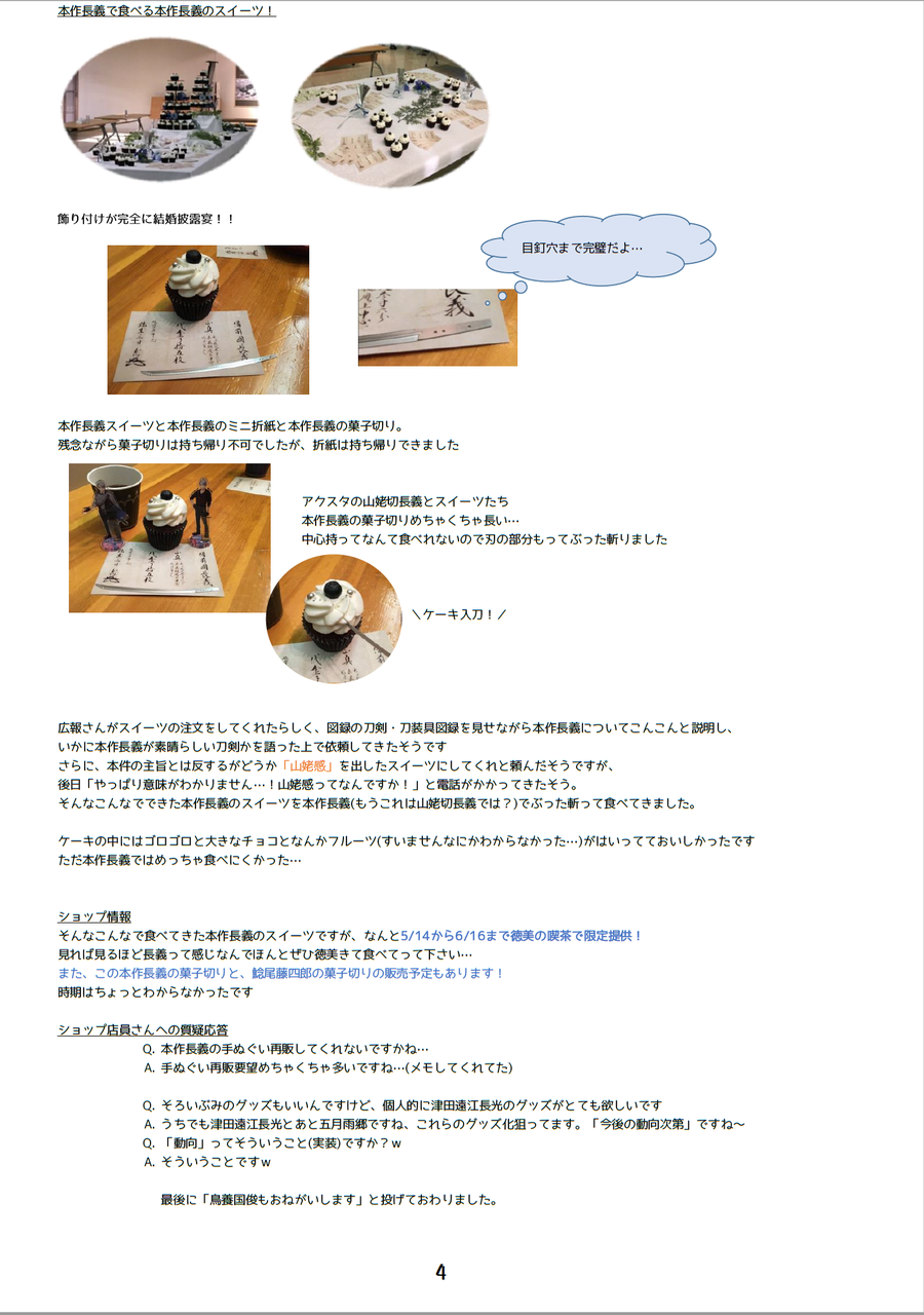 レポにも書きましたが、講演会で頂いた素敵スイーツ、「本作長義で食べる本作長義スイーツ」は