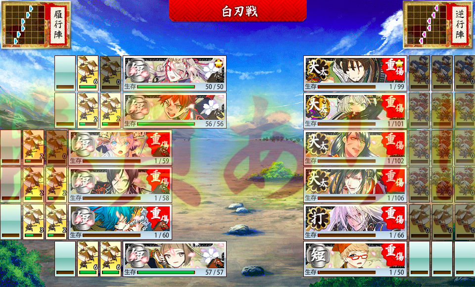 戦線崩壊してる2振りは秋田くんが博多にワンパンされ、他の2振りはパッパの2倍攻撃でワンパンされた