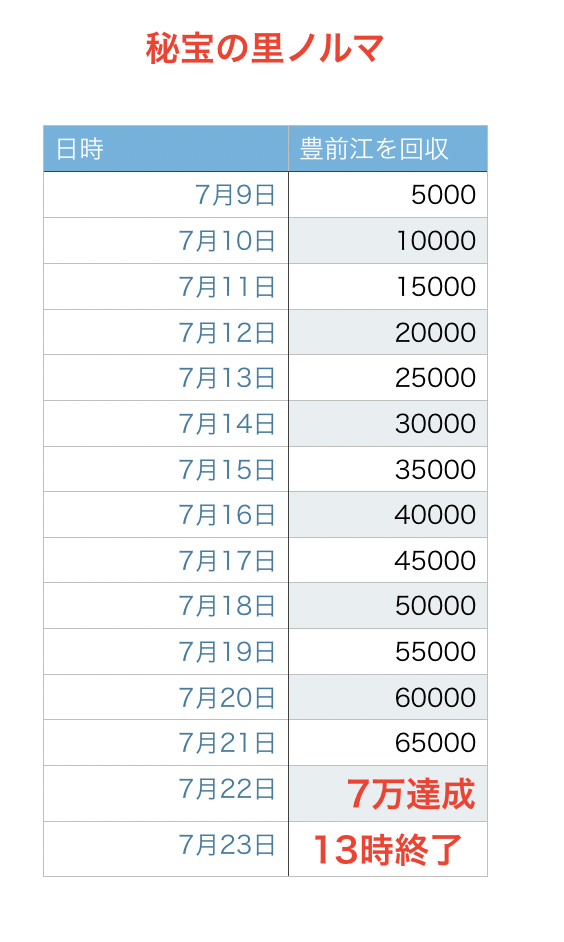 2019年秘宝の里の玉のノルマ