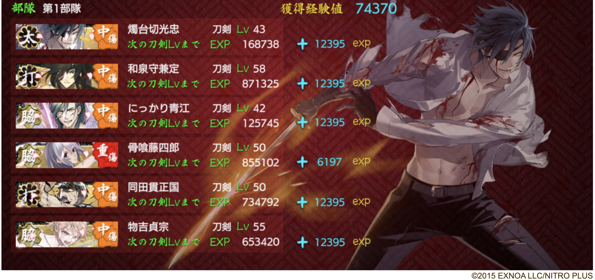 刀種どれでも極50前後あれば余裕で特級を経験値75000以上で12回以上連続出陣できる