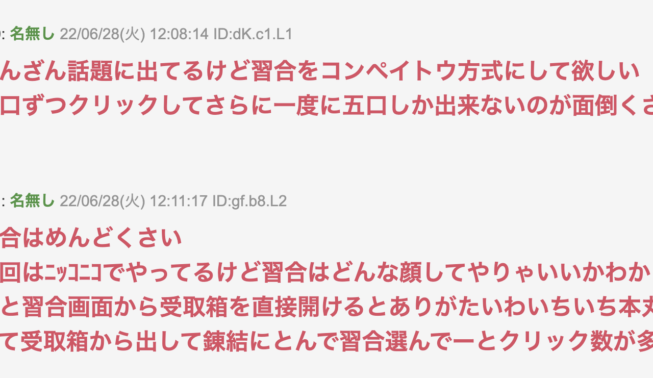 習合レベルがある以上は上げやすくしてほしいよなとは思う 登場してすぐの子をとは言わないが数年経ってる子とかだとなあ