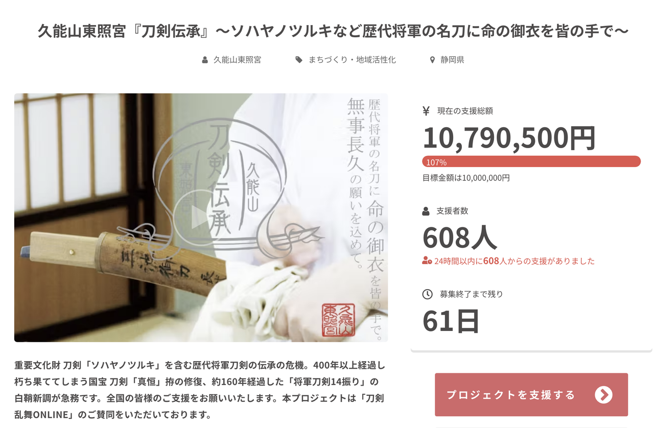 久能山東照宮さんのクラファン再び!https://camp-fire.jp/projects/view/711428