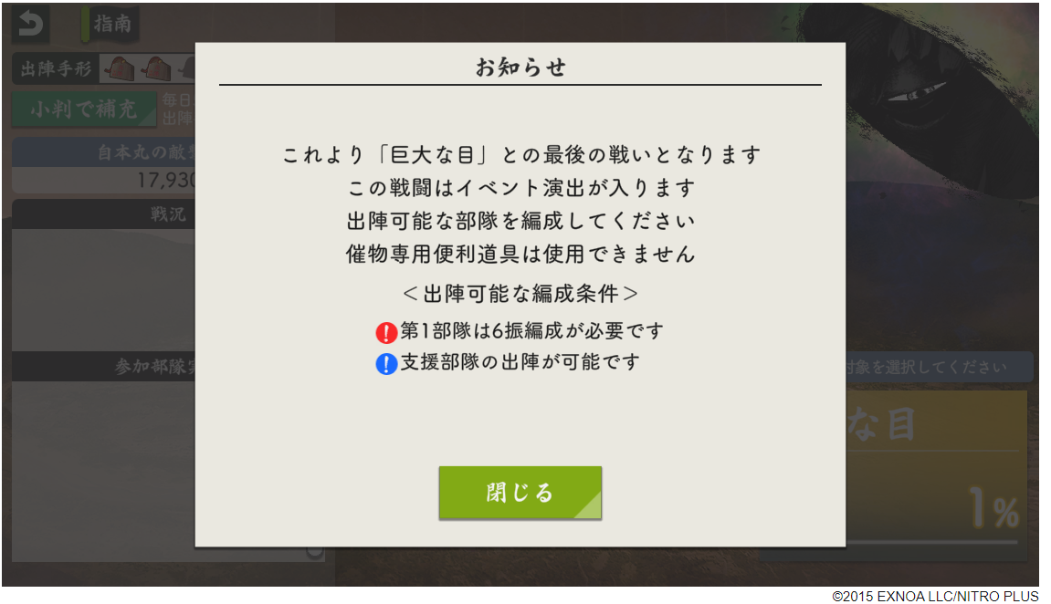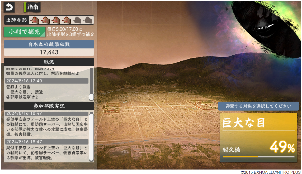 刀剣乱舞ONLINE(とうらぶ)の「対百鬼夜行迎撃作戦」の最後の敵「巨大な目」が登場から討伐までのスレの様子