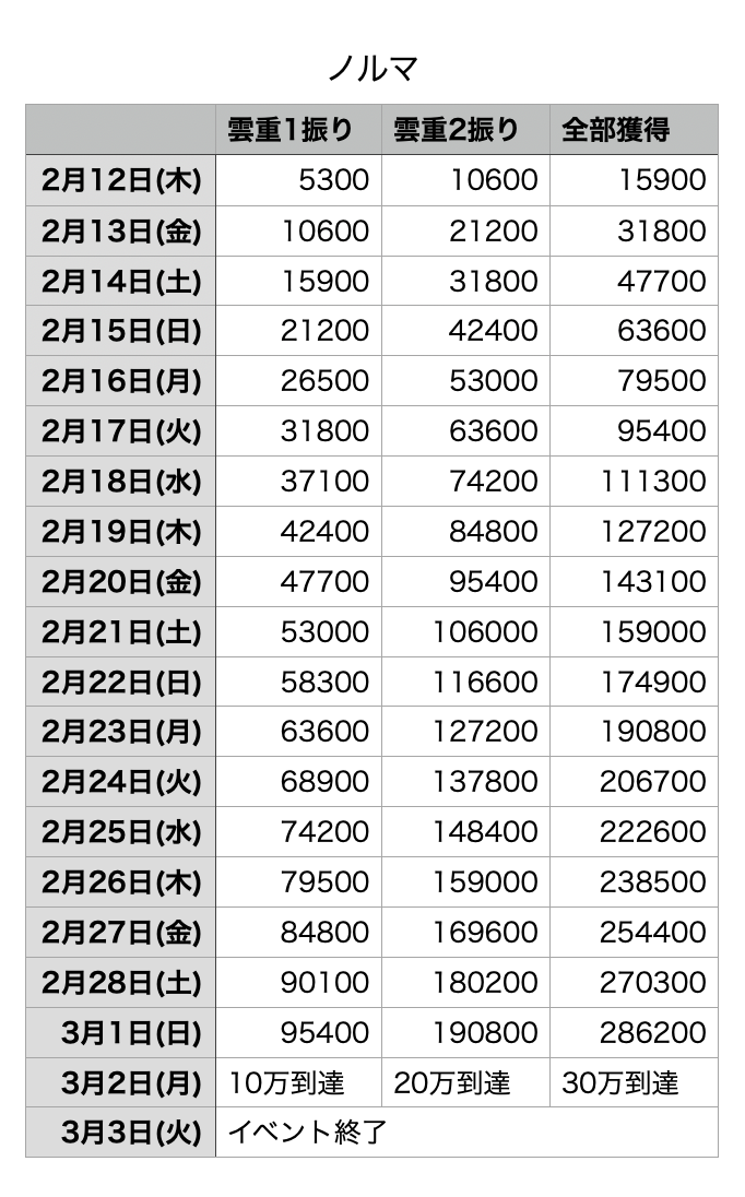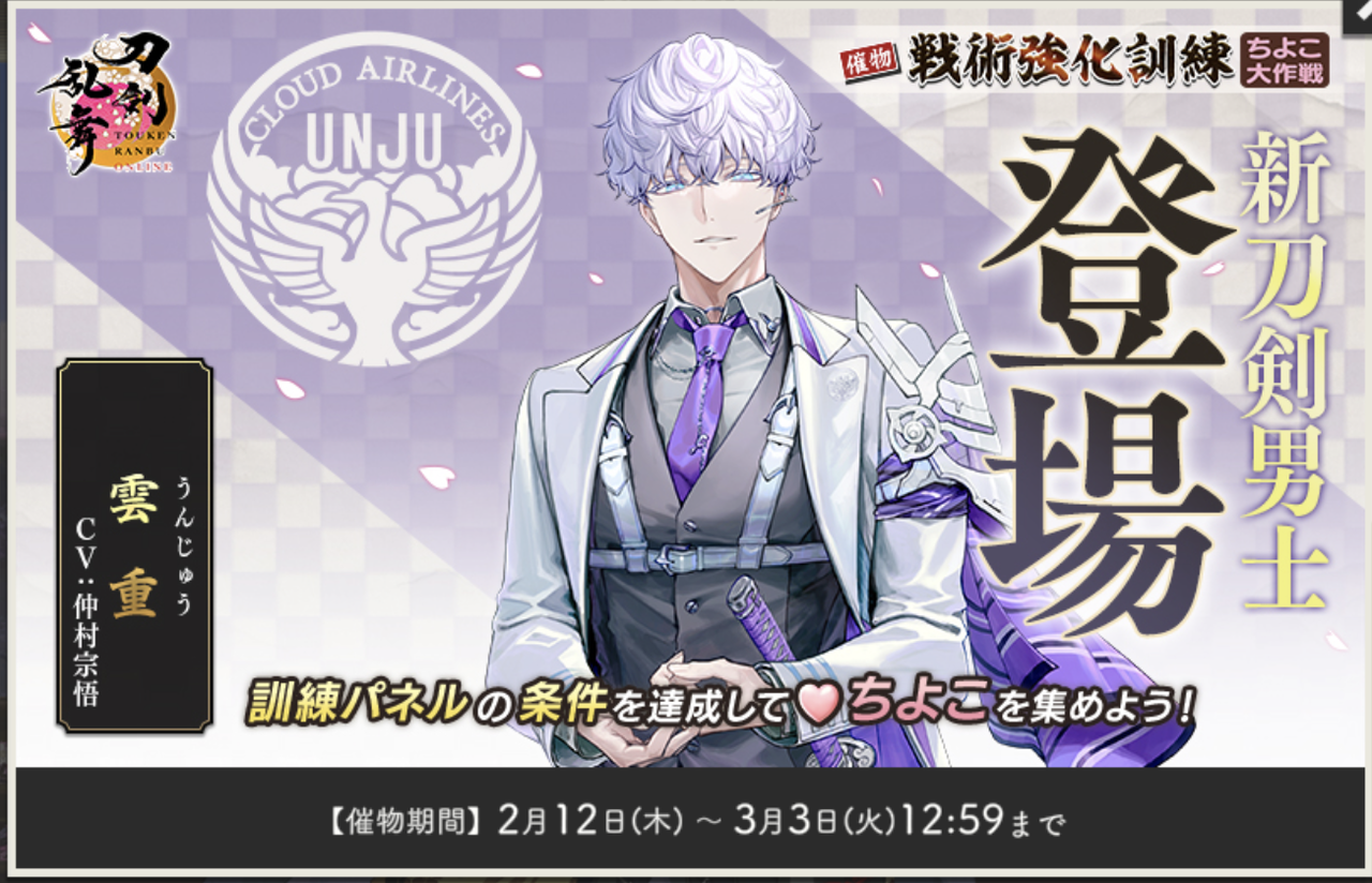 - 新刀剣男士「雲重」ノルマは10万と20万